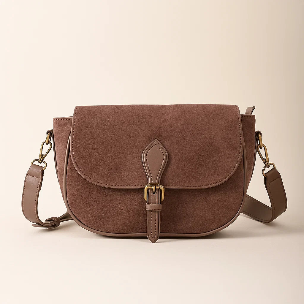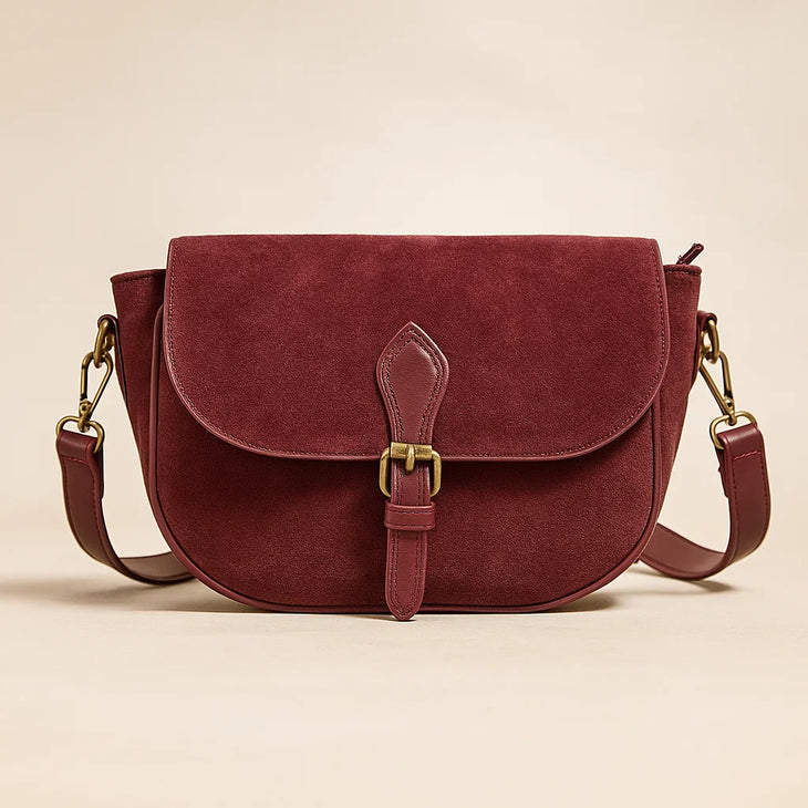 Ce sac en cuir se distingue par sa forme arrondie et son rabat avec boucle décorative. Sa bandoulière ajustable et amovible permet un porté épaule ou crossbody, s’adaptant à toutes vos envies. Ses finitions soignées soulignent son allure chic et durable.