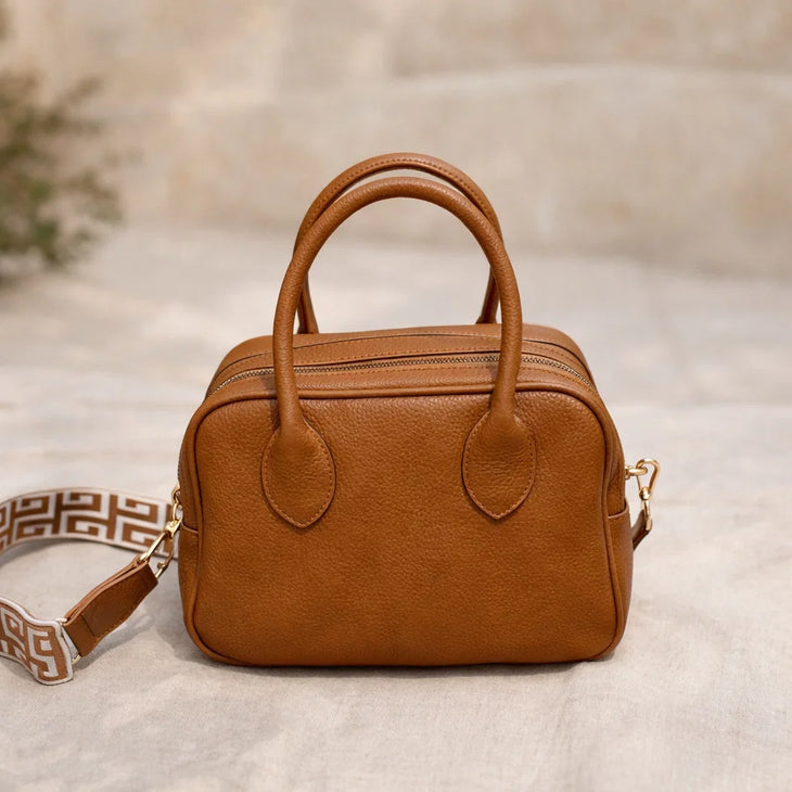 Avec sa forme structurée et ses finitions soignées, ce sac apporte immédiatement une touche raffinée à votre silhouette. Ses anses arrondies permettent un porté main confortable, tandis que sa bandoulière ajustable offre la possibilité de le porter à l’épaule ou en travers pour plus de praticité au quotidien.