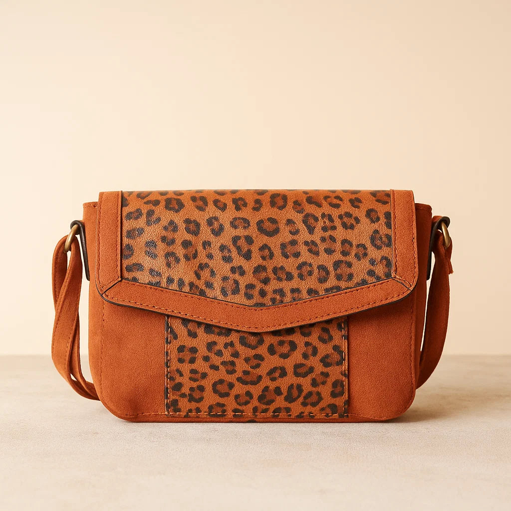Sac bandoulière brique avec rabat imprimé léopard – 25x19x7 cm