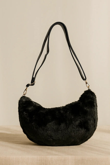 Sa matière pelucheuse, ultra douce au toucher, apporte un côté cocooning tout en conservant un style moderne. Le format hobo arrondi est à la fois esthétique et très confortable à porter. Il offre un bel espace intérieur pour accueillir vos essentiels : portefeuille, téléphone, clés, lunettes ou petite trousse beauté. Sa bandoulière réglable permet un porté épaule ou croisé selon vos envies, et ses attaches dorées lui ajoutent une note chic.