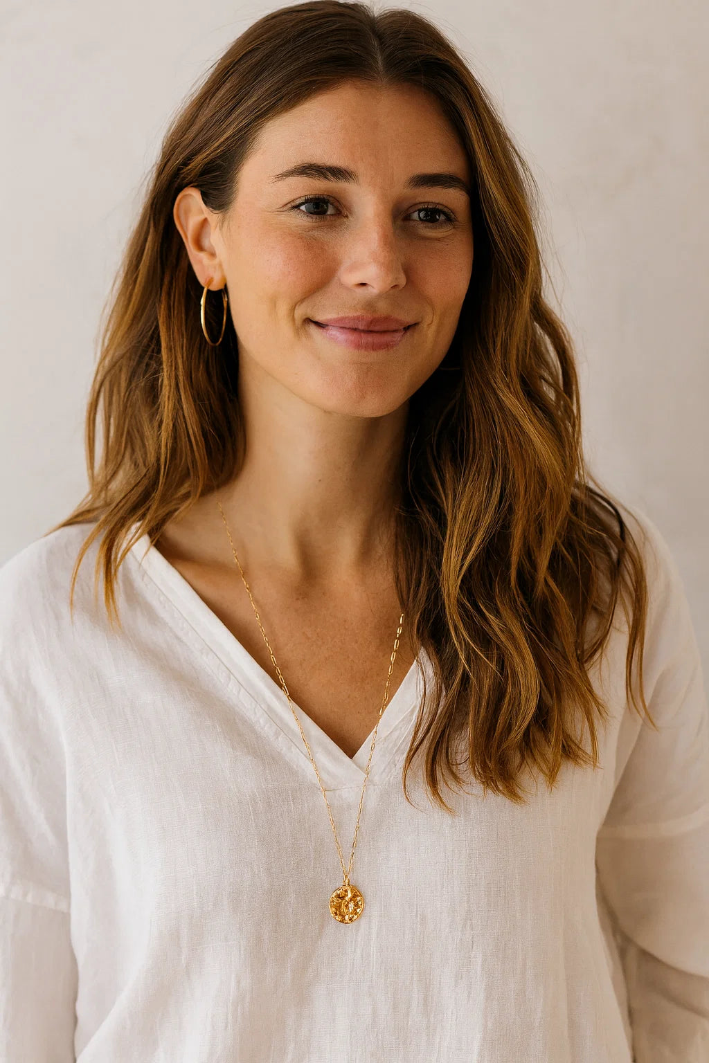 Le médaillon martelé apporte une touche artisanale et tendance, parfaite pour celles qui aiment les bijoux simples mais avec du caractère. C’est également un cadeau idéal : chic, intemporel et adapté à tous les styles.