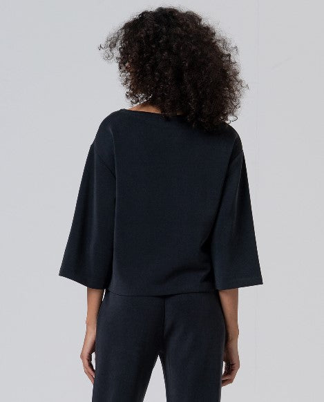 Sa coupe ample et ses manches 3/4 légèrement évasées apportent une allure chic et décontractée à la fois. Sa couleur noire intemporelle en fait une pièce polyvalente, facile à associer avec de nombreuses tenues, du look casual au style plus habillé.