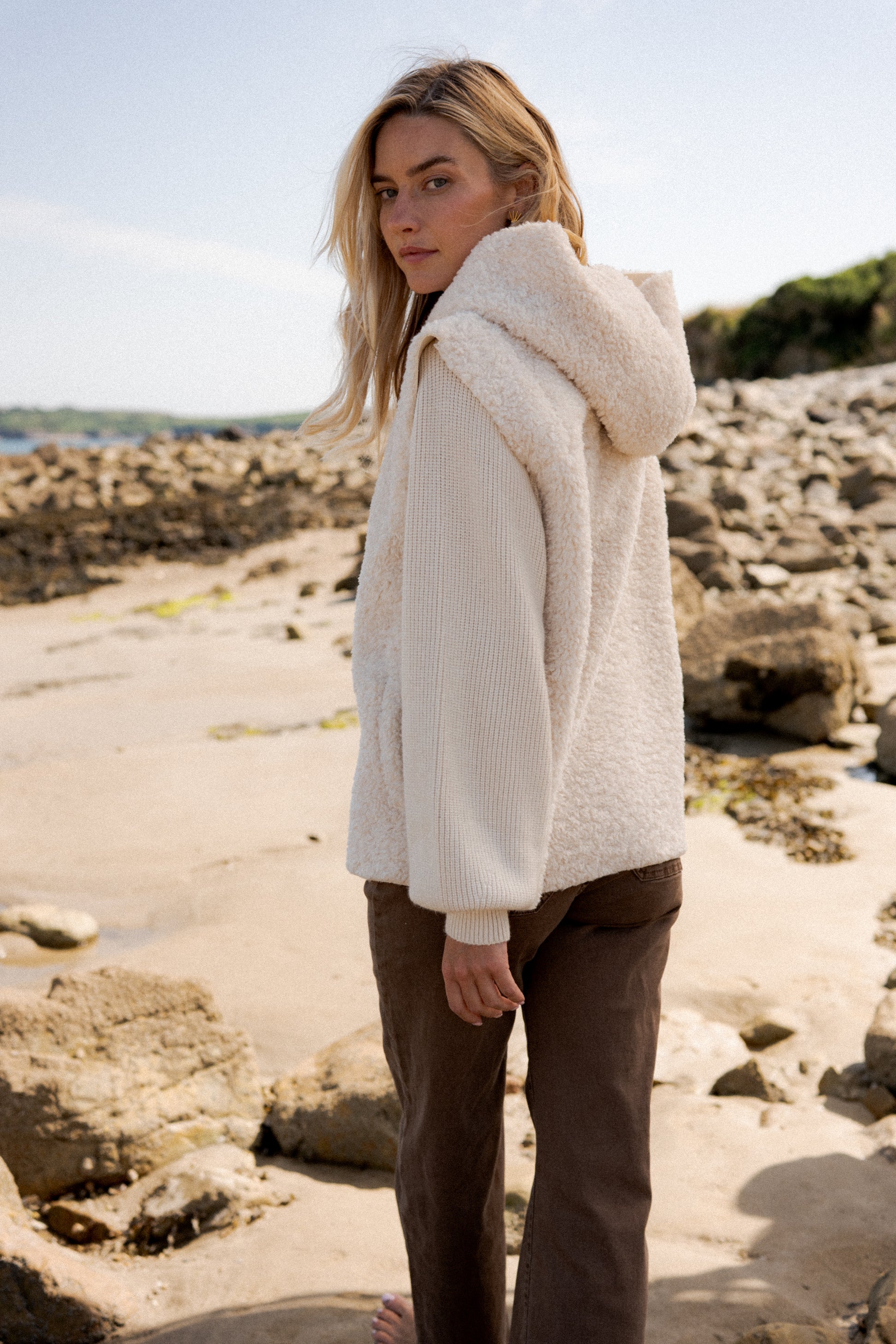 💡 Pour un effet plus ample et cocooning, choisissez votre taille habituelle ou une taille au-dessus si vous aimez porter des pulls épais dessous.